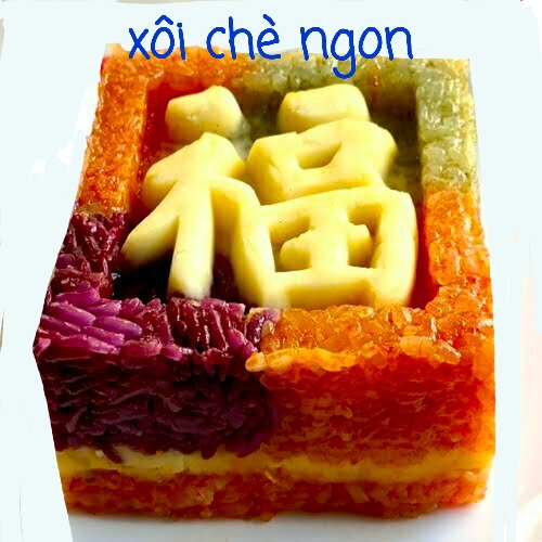 Xôi 3 tầng sang trọng gồm: gấc+đậu xanh+ lá cẩm